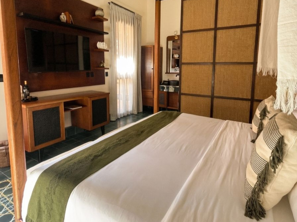 An intimate space with a king-size bed for unhurried sleep and a balcony where fresh air sets the day's pace. Ideal for couples seeking comfort and calm, with a private bathroom and natural amenities that accompany your routine with a gentle touch of well-being.