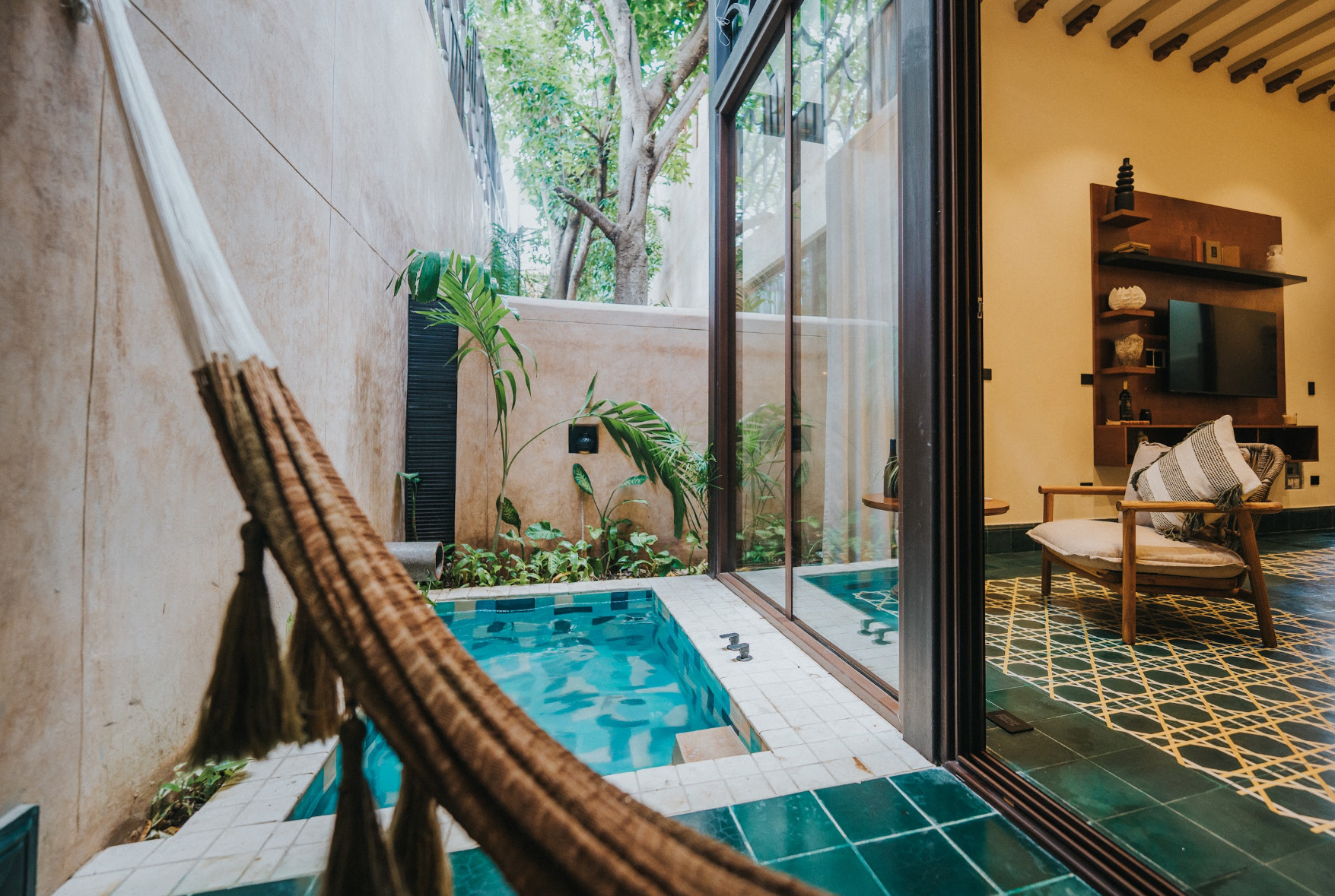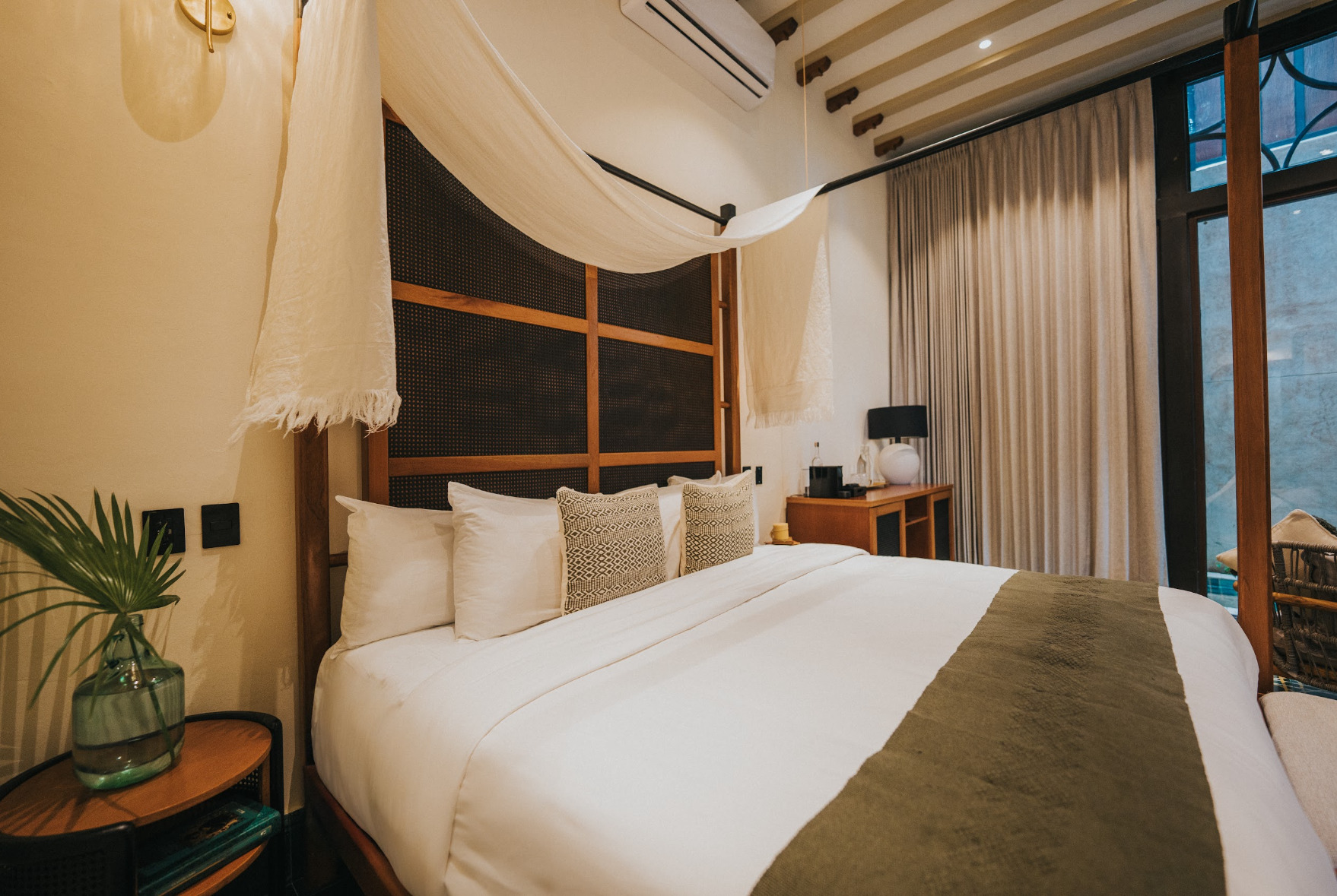 A suite designed for those who enjoy every detail: a king-size bed, a balcony to start or end the day outdoors, and a small private plunge pool to slow down at your own pace. The private bathroom, with natural amenities, completes an experience designed for deep rest and disconnection.